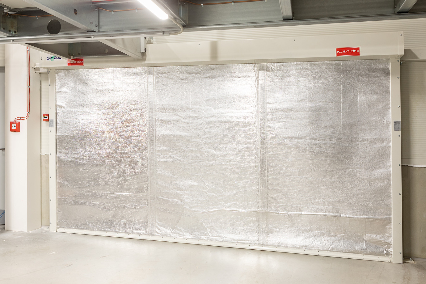 Ako požiarny bezpečnostný uzáver v tomto prípade slúžia protipožiarne posuvné vráta, ktoré sú trvalo otvorené. Zatvárajú sa len v prípade signálu z EPS, kedy sa samovoľne uzavrú. Pre tento vysoko frekventovaný uzáver slúžia na uzavretie otvoru vysokorýchlostné hliníkové rýchlonavíjacie vráta s bezdotykovým navíjaním vrátového krídla.